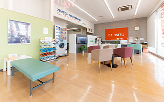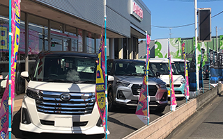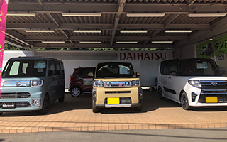 | 業務内容 | ダイハツはじめ国産全メーカー新車販売 中古車販売 車検・点検・一般修理・鈑金塗装 自動車保険取扱い |